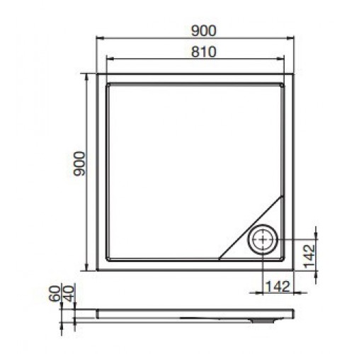 1) Душовий піддон квадратний Roca Malaga Square 90х90 см акрил білий