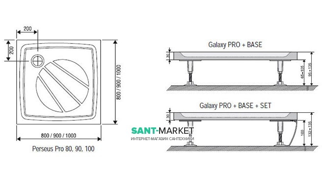 Варіанти квадратних душових піддонів PERSEUS PRO: