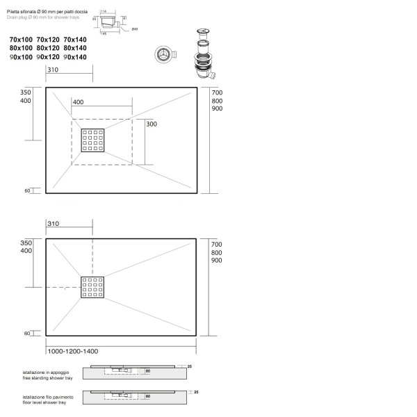 1) Душовий піддон мармуровий Kerasan H3 140х90 см