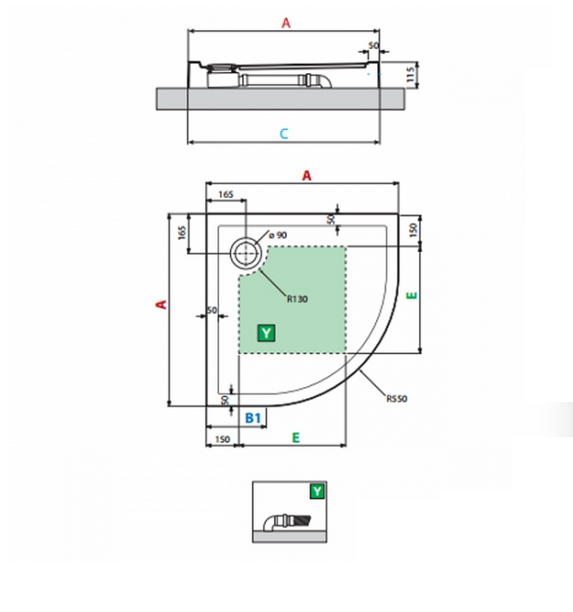 1) Душовий піддон Novellini New Victory 90x90 см акрил білий