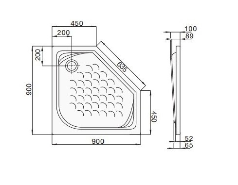 Душовий піддон, відлитий зсанітарного акрилу, глибиною 52 мм, вбудовується в підлогу, без ніжок, без сифона. Додатково комплектується сифоном PD5000037. Комбінується з душовими кабінами: Metropolis Diamond.