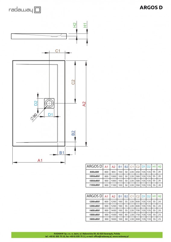 1) Душовий піддон Radaway Argos D 160x90 см акрил білий