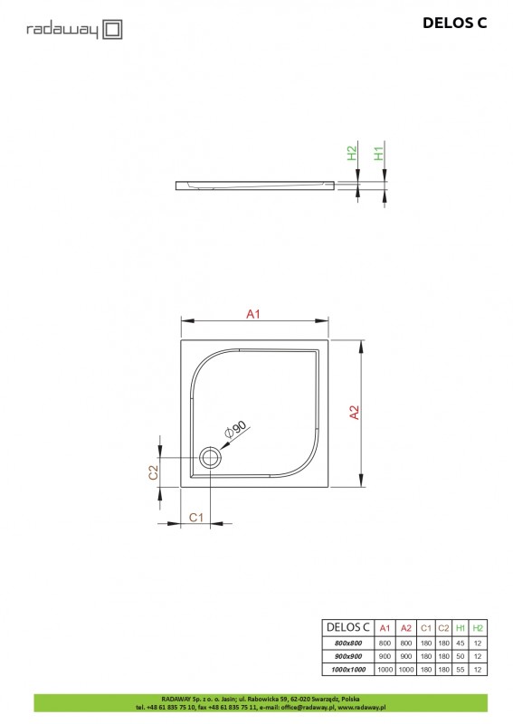 1) Душовий піддон Radaway Delos D 90x90 см акрил білий