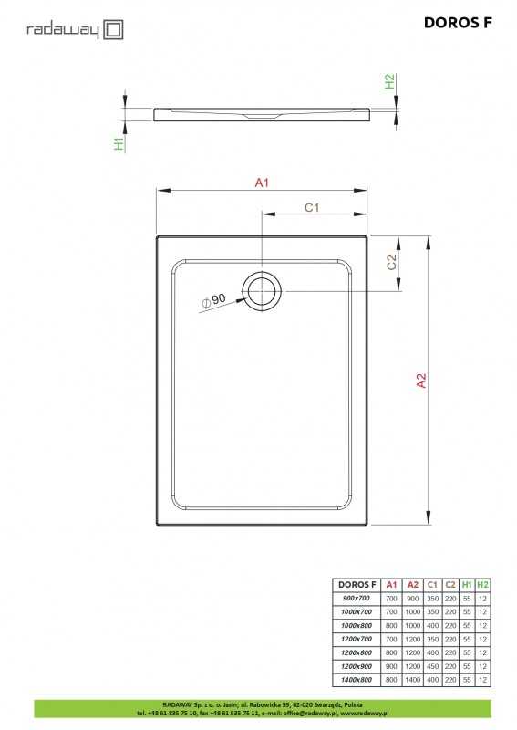 1) Душовий піддон Radaway Doros F 100x80 см акрил білий