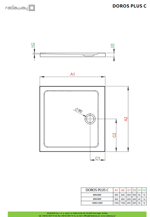 1) Душовий піддон Radaway Doros Plus C 80x80 з акрил білий