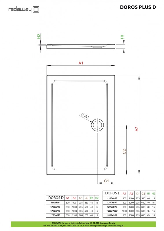 1) Душовий піддон Radaway Doros Plus D 13 0x90 см акрил білий