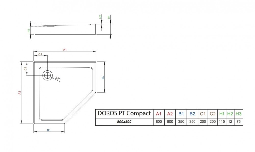 1) Душовий піддон Radaway Doros PT Compact 80х80 см акрил білий