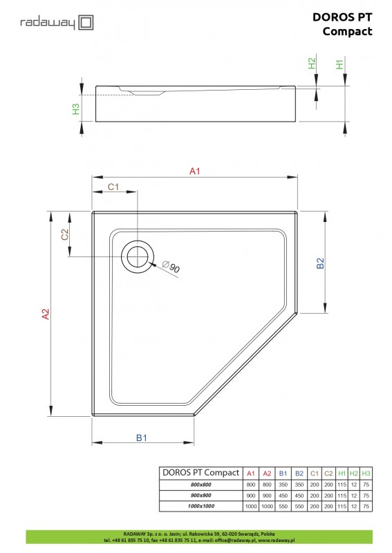 1) Душовий п Оддон Radaway Doros PT E Compact 100x80 см правий акрил білий