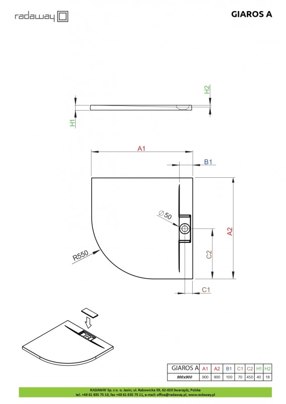 1) Душовий піддон Radaway Giaros A 90х90 см литий камінь білий 12345678