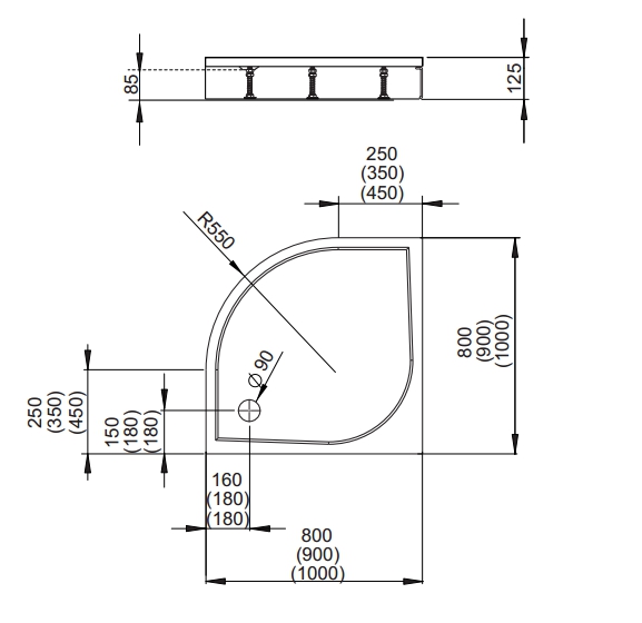 Radaway виготовляє величезний вибір різноманітних моделей піддонів для душа. Від найпростіших класичних білих до елегантних кольорових. Серія Paros - вироби з литого (рідкого) мармуру білого, сірого, коричневого і чорного кольорів. Плоскі, зотворами для сифона 90, піддони комплектуються ніжками. Окремо можна придбати до них передню панель потрібного кольору. Можуть встановлюватися прямо на підлогу - висота без ніжок 3 см. З ніжками і панеллю висота - 12,5 см. Форми виробів даної серії: напівкругла, квадратна, прямокутна.