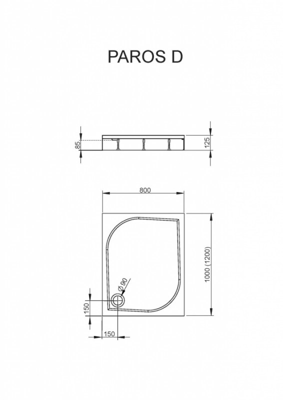1) Душовий піддон Radaway Paros D 120x80 см сірий граніт