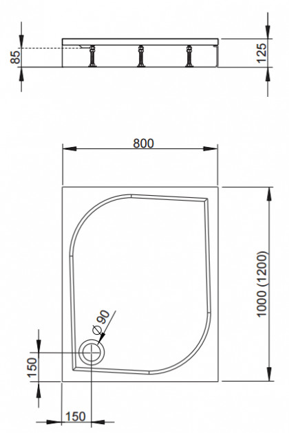 1) Душовий піддон Radaway Paros D 120x80 см литий мармур білий