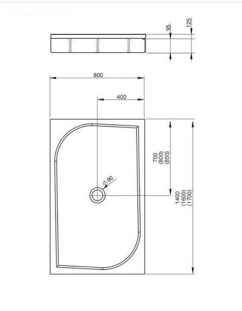 1) Душовий піддон Radaway Paros D 140x80 см сірий граніт