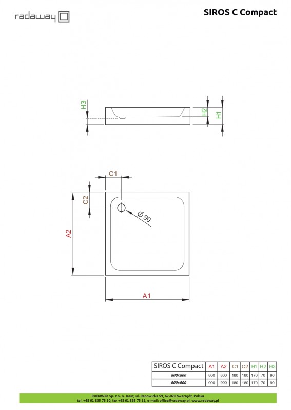 Душовий піддон Radaway Siros C Compact 80x80 см акрил білий SBC8817-2