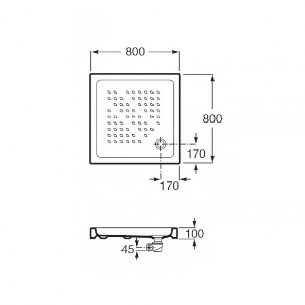 1) Душовий піддон Roca Italia квадратний 80х80 см кераміка білий