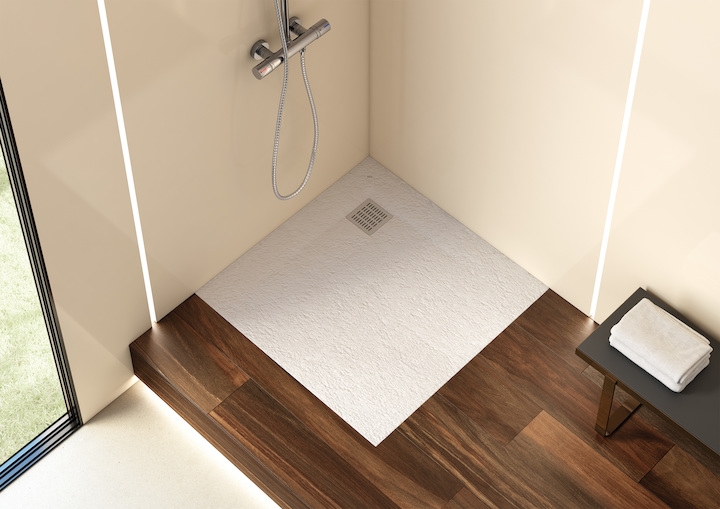 Terran -душові піддони, виконані з STONEX®, міцного і довговічного матеріалу. Текстурована обробка надійно запобігає ковзанню на поверхні душового піддону.