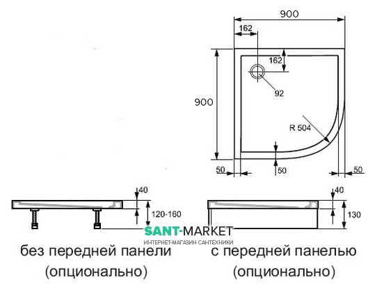 Душовий піддон штучний мармур чверть кола Huppe Purano 90х90х4 білий 202151.055