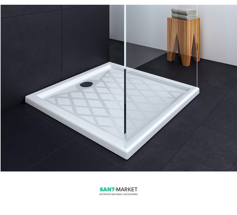 ¦Піддон «Пандора» 900 має форму квадрата, що дозволяє розміщувати його на Ваш розсуд у будь-якій точці ванної кімнати (в кутку або під стіною). Поверхня цього піддону має малюнок з шорсткою текстурою, яка носить характер антиковзного покриття, завдяки чому зменшується ризик послизнутися під час прийняття душу. Душовий піддон має невелику глибину та стандартний зливний отвір діаметром 90 мм. Душові піддони представлені у двох варіантах за висотою зовнішнього борту: з висотою 40мм (стандартний варіант), а також з висотою 25мм для монтажу на підлогу. Піддони можна встановлювати в підлогу, на підлогу або за допомогою монтажного комплекту на ніжки з екраном.