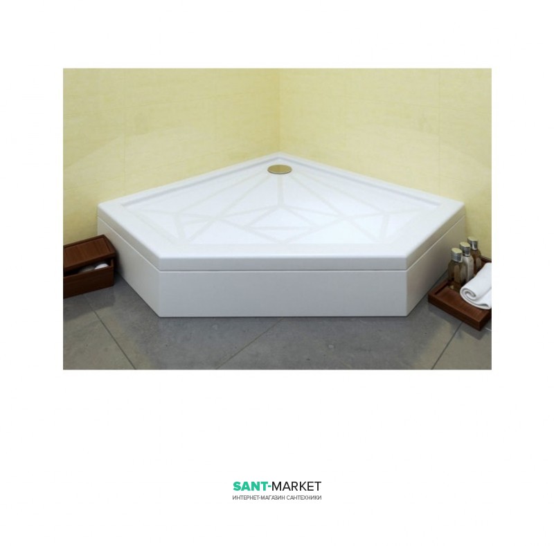 Піддон «Прем'єр» 900 має п'ятикутну форму, що відрізняє його від звичних стандартних форм. Поверхня цього піддону має цікавий і оригінальний малюнок з шорсткою текстурою, яка носить характер антиковзного покриття, завдяки чому зменшується ризик посковзнутися під час прийняття душу. Душовий піддон має невелику глибину та стандартний зливний отвір діаметром 90 мм. Душові піддони представлені у двох варіантах за висотою зовнішнього борту: з висотою 40мм (стандартний варіант), а також з висотою 25мм для монтажу на підлогу. Піддони можна встановлювати в підлогу, на підлогу або за допомогою монтажного комплекту на ніжки з екраном.