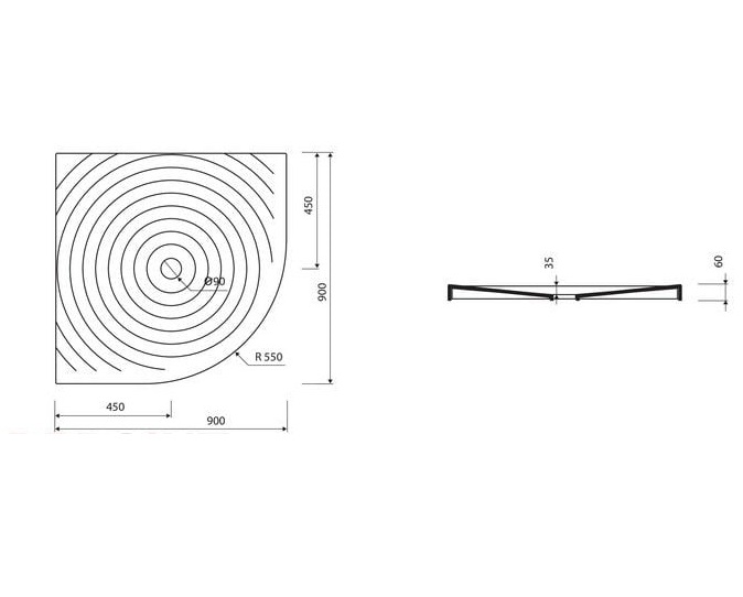 Душовий піддон Marmorin Rosa 90х90 см штучний камінь білий 255 090 2xx