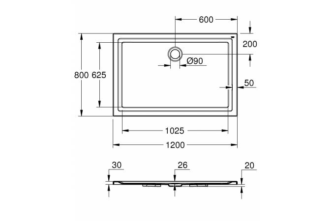 1) Душовий акриловий піддон Grohe 120x80 універсальний білий