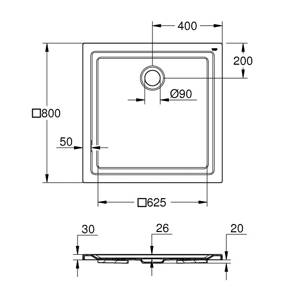 Душовою акриловий піддон GROHE 80х80 квадратний білий 39302000
