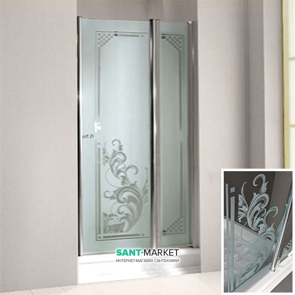 Двері SX в нішу орні Kerasan Retro, ліва / прозоре з матовим малюнком / хром - лівостороння двері з нерухомою панеллю. Колір профілю та фурнітури хром, ручка кристал.
