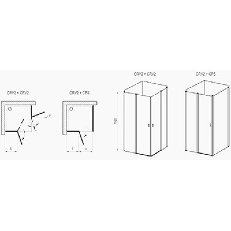 Один виріб CRV2 утворює половину душового куточка. Для створення прямокутного душового куточка необхідно замовити 2x CRV2. Виріб встановлюється в облицьований кахлем кут ванної кімнати на піддони RAVAK ANGELA, PERSEUS, PERSEUS PRO, PERSEUS PRO CHROME, GIGANT PRO, PERSEUS PRO FLAT, GIGANT PRO FLAT, GIGANT PRO CHROME або безпосередньо на підлогу з вбудованим душовим каналом або трапом. У комплектацію вироби входять 2x металевих держателя
