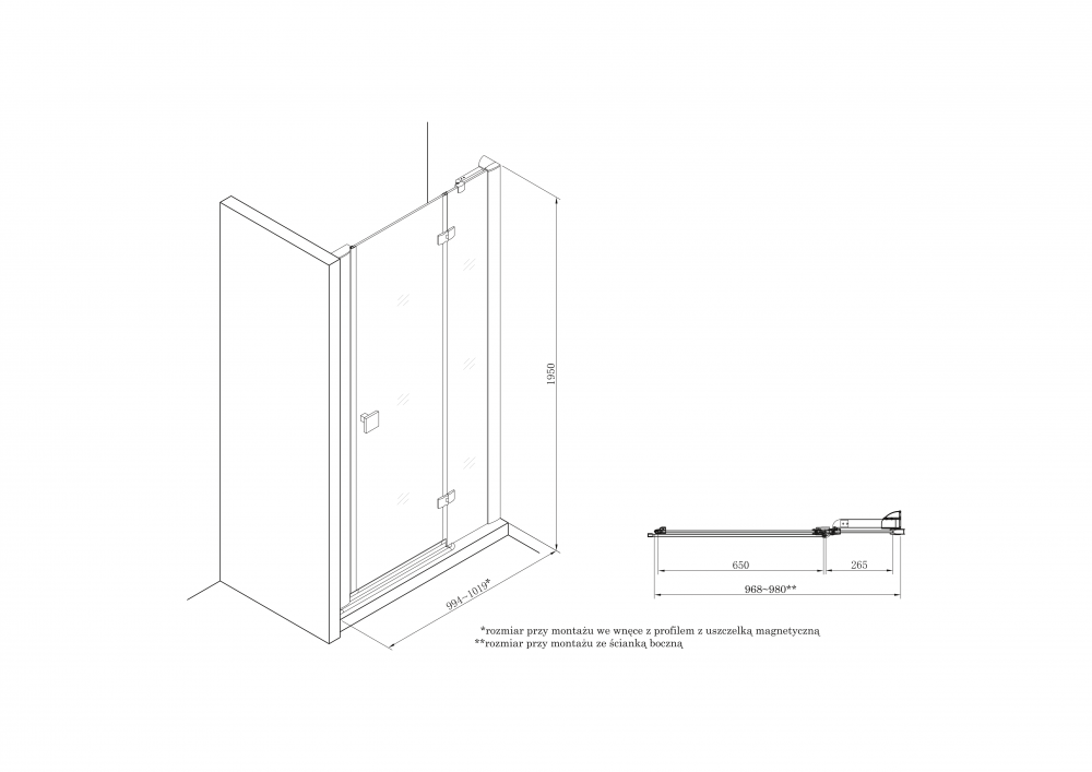 1) Двері душова орні Roca Metropolis 100х195 профіль алюміній хром прозоре скло
