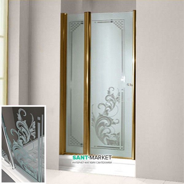 Двері DX в нішу орні Kerasan Retro, права / прозоре з матовим малюнком / бронза - правобічна двері з нерухомою панеллю. Колір профілю та фурнітури бронзовий, ручка кристал.