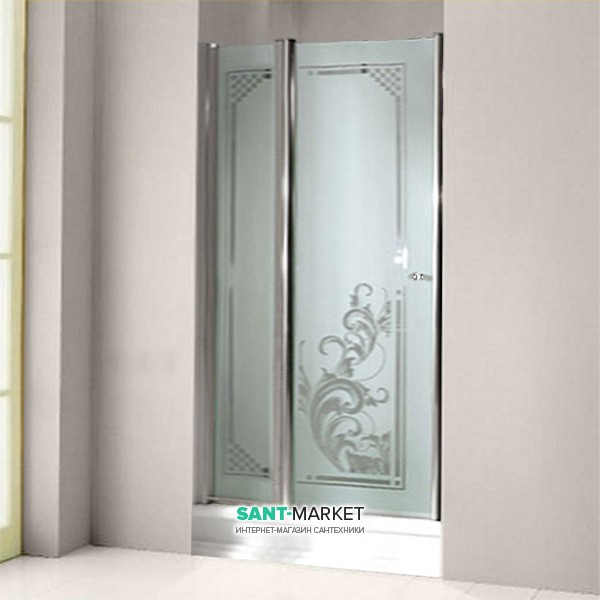 Двері душова правобічна Kerasan Retro профіль хром скло матове з декором