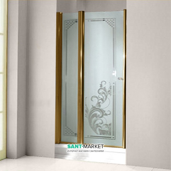 Двері душова правобічна Kerasan Retro профіль бронза скло матове з декором