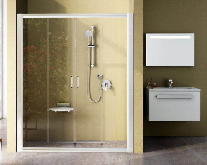 Встановлюється в облицьований кахлем кут ванної кімнати (ідеально для облицьованої ніші або для комбінації з нерухомою стінкою BLPS) на піддони RAVAK PERSEUS, PERSEUS PRO, PERSEUS PRO FLAT, PERSEUS PRO CHROME, GIGANT PRO, GIGANT PRO FLAT, GIGANT PRO CHROME або безпосередньо на підлогу з вбудованим душовим каналом або трапом.