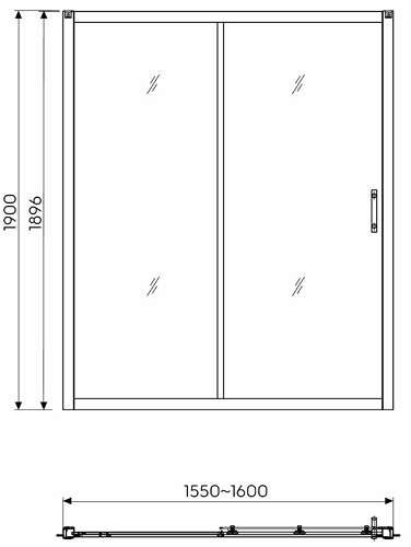 Двері душова розсувні Kolo Geo 160 см прозоре скло профіль срібний 560.183.00.3