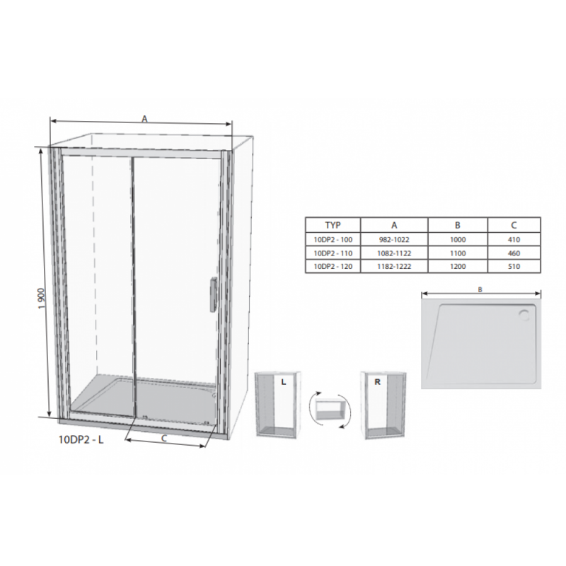 В сочитании з нерухомою стінкою 10PS можна створити душовий куточок небхідно Вам розміру.