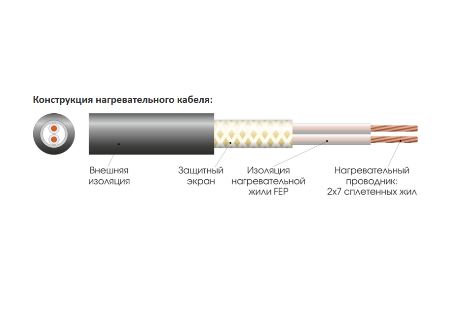- Застосування: зовнішнє (системи сніготанення для покрівель, водостоків, ступенів майданчиків, захист від замерзання води і рідин в трубах)