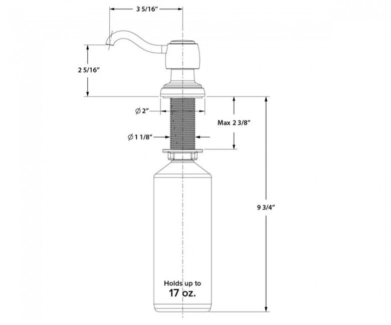 Дозатор для миючого засобу з легким натисканням ідеально підходить для кухонного змішувача, для подачі мила на губку або безпосередньо в раковину. Пляшка великої місткості вміщує 414 мл рідкого мила, лосьйону або рідкого миючого засобу. Заправки зверху для максимальної зручності. Різьбове з'єднання полегшує установку завдяки герметичному водонепроникному ущільнення над і під стійкою для захисту від протікання. Насос обертається на 360 °, тому ви можете розташувати форсунку там, де вам потрібно. Поставляється на вибір з п'ятипокриттів, щоб відповідати будь-якому кухонного крану.