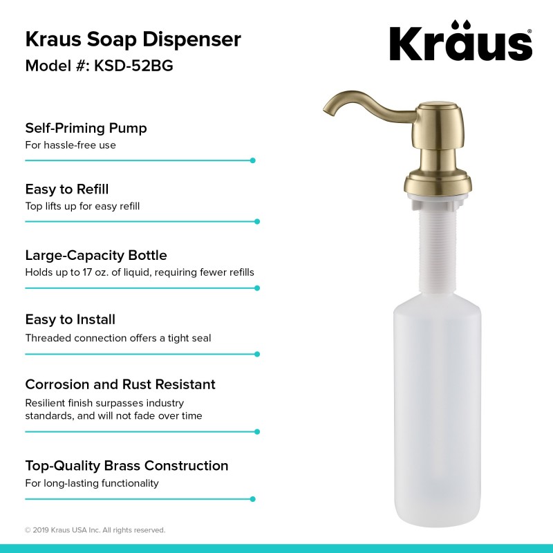 Диспенсер для рідкого мила Kraus Mylo матове золото KSD-52BG
