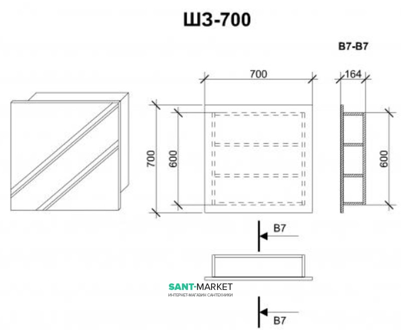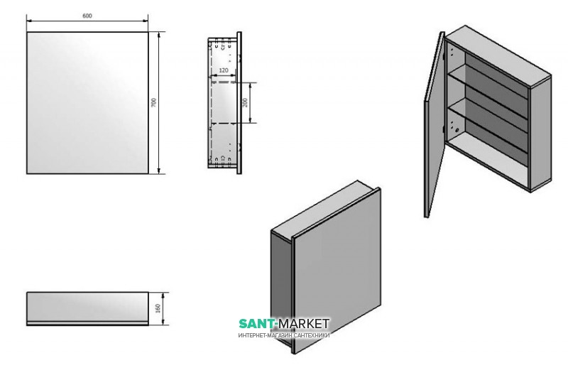 Дзеркало для ванної кімнати марки Буль-Буль, модель MC-700. Розмір 600х700х164 мм, без підсвічування. Дана модель дзеркала для ванної кімнати є нашим стандартним виробом і випускається у двох кольорах, білому та чорному кольорі.
