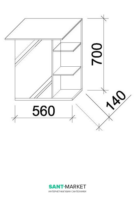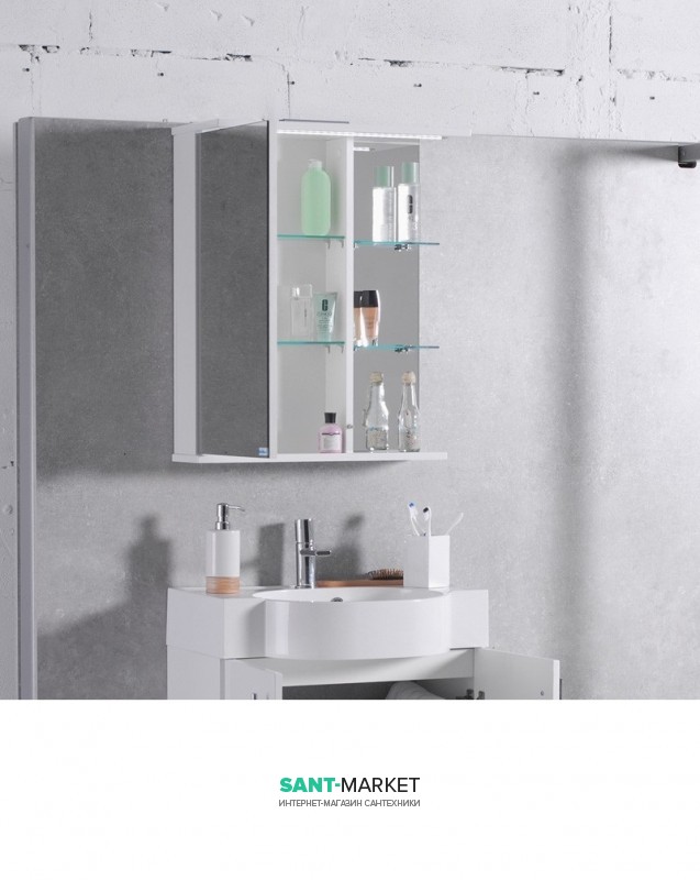 1) Дзеркальна шафа Буль-Буль МС-8 з діодним підсвічуванням 580x260х710 білий
