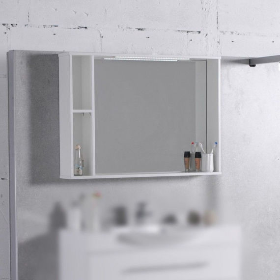 1) Дзеркальна шафа Fancy Marble 98,4х15,6 см з діодним підсвічуванням ДСП біла