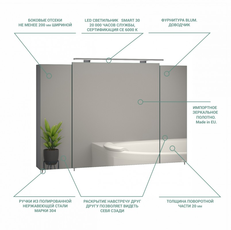 Дзеркальна шафа Sanwerk Everest 100х11,4 см без підсвічування ЛДСП сірий