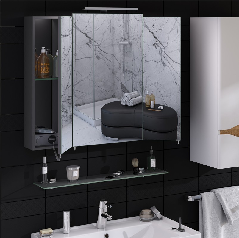 Дзеркальна шафа Sanwerk Everest 80х11,4 см без підсвічування ЛДСП сірий MV0000777