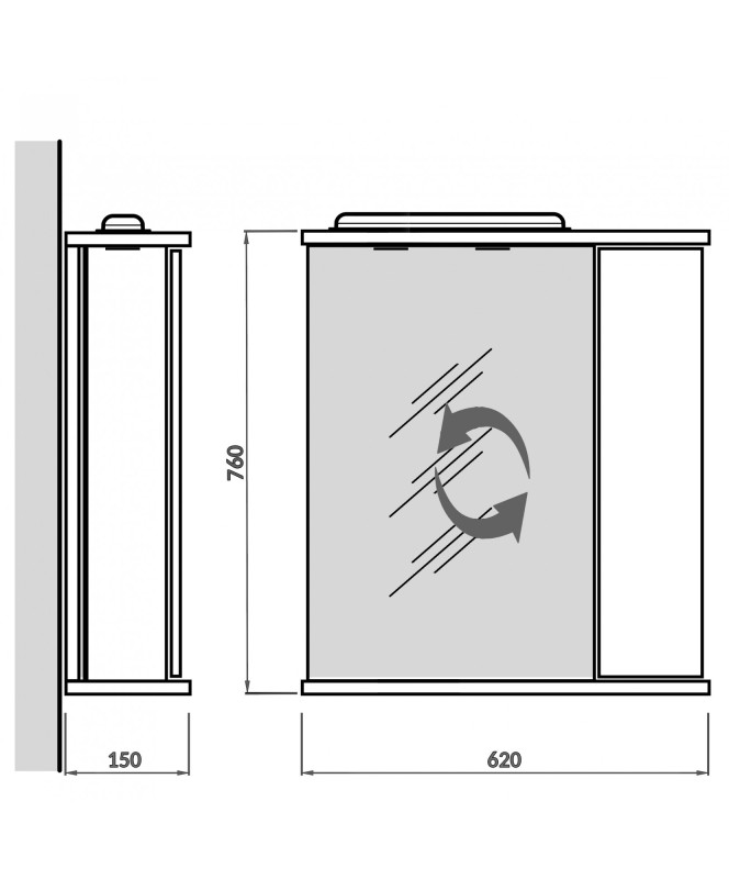 Дзеркальна шафка Мийдодир СТ-60 62х76 см з LED-підсвічуванням ДСП білий глянець 00-00004089