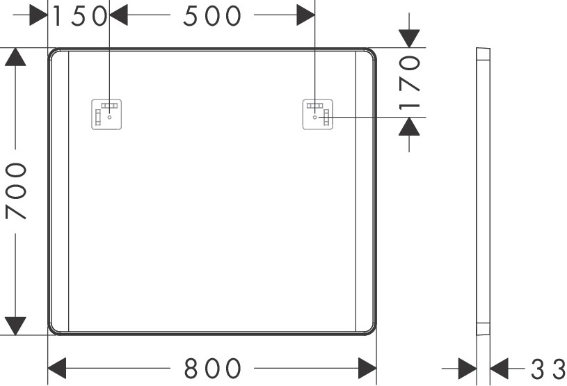 Дзеркало для ванної Hansgrohe Xarita Lite Q 80х70 см з боковим LED-підсвічуванням чорний матовий 54963670