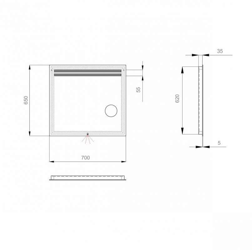 1) Дзеркало для ванної Sanwerk Lava Della 70х65 см з LED-підсвіткою