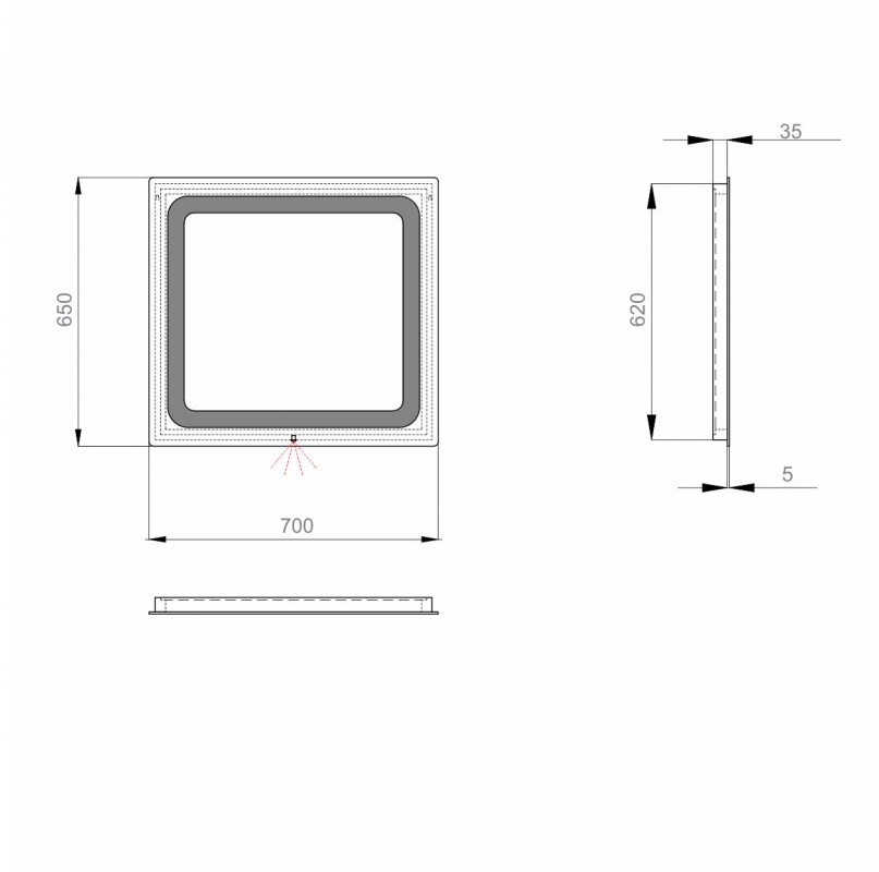 1) Дзеркало для ванної Sanwerk Lava Хелла 70х65 см з LED-підсвіткою
