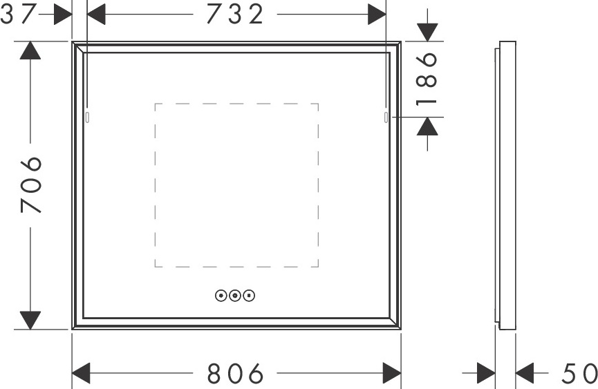 Дзеркало Hansgrohe Xarita E 80,6х70,6 см з LED-підсвічуванням та датчиком дотику білий матовий 54987700