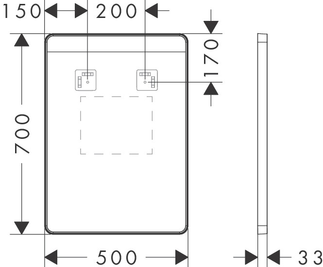 Дзеркало Hansgrohe Xarita Lite Q 50х70 см з горизонтальним LED-підсвічуванням та ІЧ-датчиком білий матовий 54969700