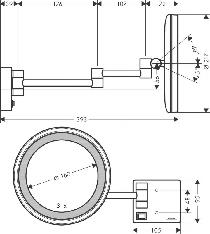Дзеркало косметичне Hansgrohe AddStoris з LED підсвічуванням чорний матовий